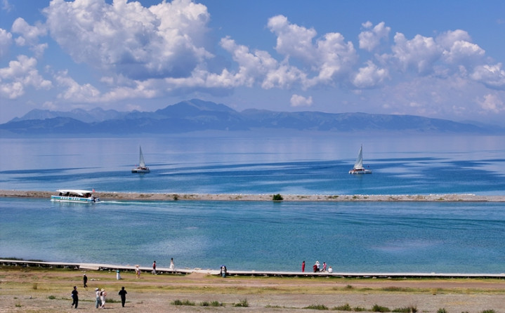 7月17日,游客在赛里木湖景区游玩赏景。暑期来临,位于新疆博尔塔拉蒙古自治州的赛里木湖景区迎来盛夏旅游旺季。赛里木湖是新疆海拔最高、面积最大的高山湖泊。新华社发(张利民摄)